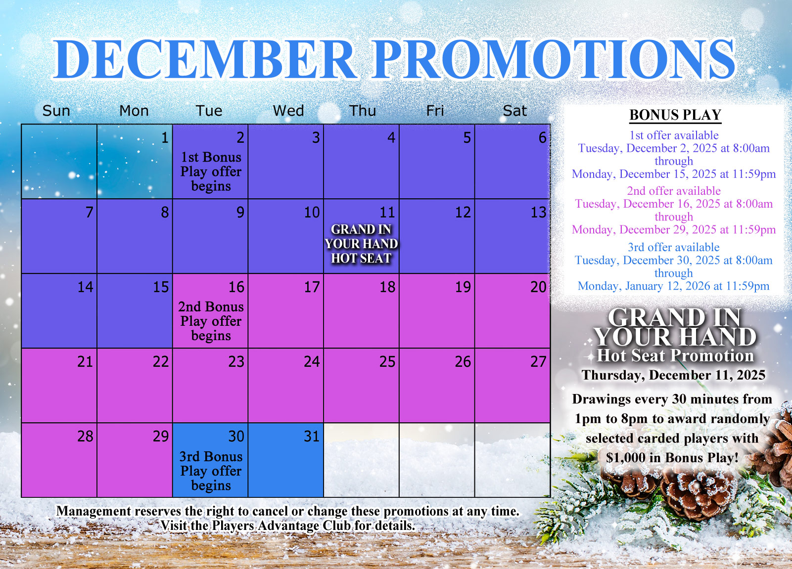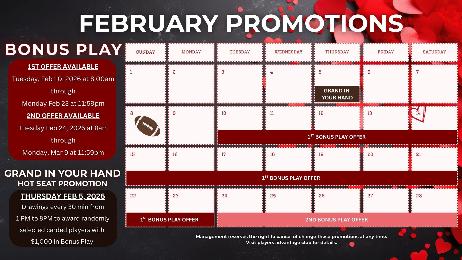 We have over 1,500 Class II Gaming Machines in denominations ranging from penny to $5. Our vast selection of game themes include many favorites such as Wheel of Fortune, Quick Hit and Black Diamond. We know you love new Gaming Machines and so do we. Come check out the latest like Timberwolf®, Buffalo®, Ice on Fire® and Total Meltdown®. To keep the action hot, every month we offer new themes, so stop by and start playing. Stop by the Players Advantage Club or check out our Jumbotron for information on recent jackpot payouts and the latest machines to hit the floor.